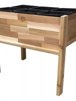 Plantables Elevated Garden Beds are the new and smart way to garden. Great way to plant Herbs, Vegetables and Flowers! Not only will you enjoy gardening without the stress on your knees and back but also the versatility of the removable containers in each Plantable! For easy planting, you remove each container, fill with soil, plant and place back into the wood planter. No more worries about wet soil rotting out your wood planter and easy to store away for the winter! Constructed in the USA with unfinished cedar, the Plantables are unassembled, quick and easy to assemble-all assembly hardware is included. Besides the Plantable versatility, there are many benefits in container gardening- easy to change soil, less disease problems, fewer pests and insects, less time weeding, the list is endless! The Plantables are perfect for City and Country Gardeners of all Ages!
